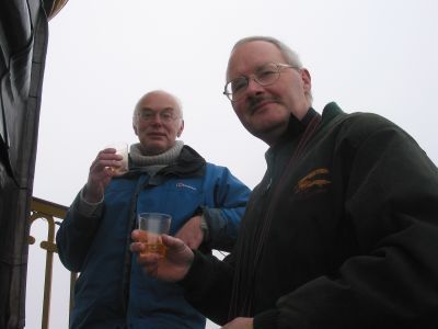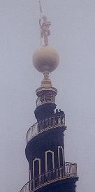 Larsen på spirets top i tåge. Billedet er taget af Lejf Rasmussen: