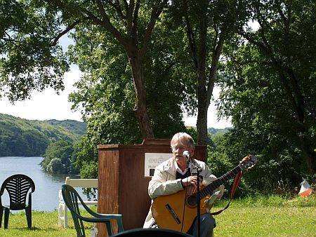En del af dem - måske alle? - har også en web-site. (Henrik, aug 2009) ![]() Store Bogdag på Hald 2012. Lidt billeder fra Store Bogdag, der afholdtes lørdag på det smukke gamle slot Hald Hovedgård ved Viborg på en af de hidtil smukkeste sommerdage i år. Meget heldigt med vejret, for store dele af arrangementet foregik udendørs i den smukke park. Verne-selskabet deltog sammen med De litterære selskaber, hvor Nils Bjørn oplæste et kapitel fra romanen Robinsonskolen. Der var udstillinger om litterære emner, lige fra bogfremstilling og -håndværk over forlagspræsentationer til et bogmarked. Sang og musik savnedes heller ikke. En spændende og vellykket udflugt til en af Jyllands smukkeste egne. Kærlig hilsen Lejf Fra Nils: Lejf og jeg havde en god dag oppe ved Hald Hovedgård. De litterære selskaber havde en pavillon tæt på hovedbygningen sammen med en