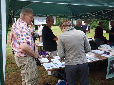 en times biltur fra Vejle i øsende regn ankom vi i nogenlunde tørvejr til Hald og fik lagt vore tryksager frem. Der var som sædvanlig ikke den store tilstrømning til Samrådets bod, men der kom dog enkelte, der mente, at en nyudgivelse var interessant. Se billedet, hvor Nils fortæller. ![]() ![]() og de var kraftige, men teltet var svageligt. Se de sidste billeder. Alle flygtede, men vi holdt længst ud. Alligevel sluttede de udendørs aktiviteter noget før tiden. ![]() Alt i alt dog en spændende dag i parken, som vi varmt kan anbefale, når St bogdag gentages i 2014. Kærlig hilsen Lejf Og fra Nils: Turen til Hald endte desværre noget brat pga. regn, men arrangørerne havde altså også lånt os et telt, der ikke var regntæt. Lejf havde vagten under den kraftige regnbyge, hvilket var en skam, da det ikke var muligt at holde tøjet helt tørt. Der var nogle forbi boden, men generelt måtte selskaberne berette, at bogsalg og indmeldelser var yderst beskedent. Vi glædede os over de første timer og Blicher sange i tørvejr. Alt i alt så jeg knap 10 Verne bøger, hvoraf den mest interessante var den privatindbundne Schou. Men absolut en udflugt værd. Mange hilsener Nils Gave fra Lejf til Nils om bøger :