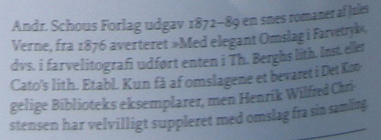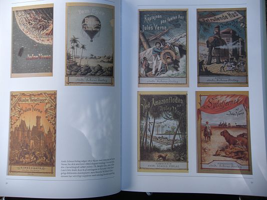 ![]() ![]() ![]() Andr. Schous Forlags Jules Verne-udgaver har fået en fornem placering - hele 2 sider med 7 omslagsbilleder. Kvaliteten af afbildningerne er helt i top - og en fornøjelse at se på. De stammer dels fra KB og dels fra mine eksemplarer. Iøvrigt er det et banebrydende boghistorisk værk med sine 610