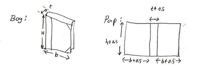 skal være 2 gange bogens bredde plus bogens tykkelse, igen med et lille