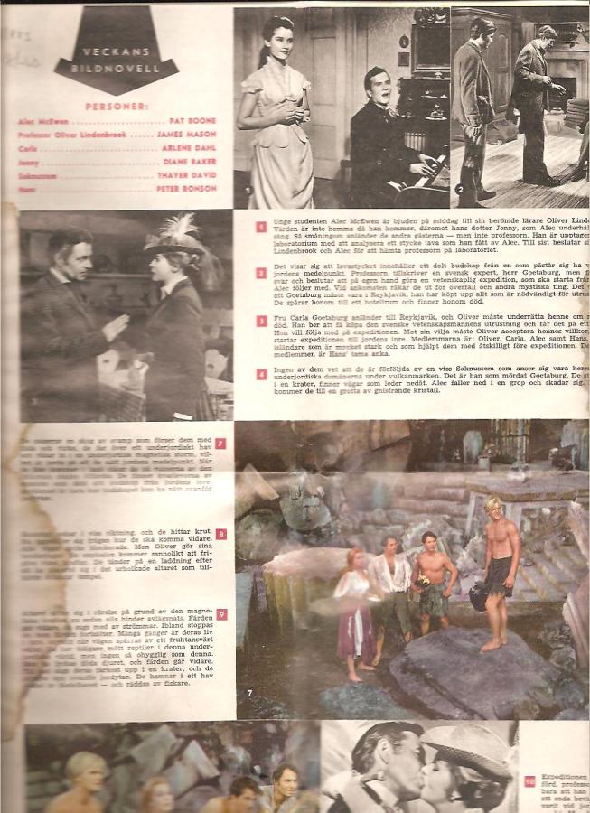 Två bilder, utgörande två sidor ur Allers nr 8/1960, med ”Veckans bildnovell”, som den här veckan var Jules Vernes ”Till jordens medelpunkt”. Bildnovellen bestod av en ytterst komprimerad bildtext samt bilder ur filmen med samma namn från 1959 (svensk premiär 1960, enligt Uno Asplund) (Lars-E)