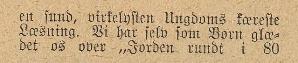 Det er ret sjovt, at Aller sammenligner prisen på en Schou-udgave uden ill. til 6 kr. og "I ledige Timer"s til 80 Øre og så endda med Poul Steffensens tegninger. Man kan altså så sent som 28 år efter udgivelsen huske prisen på Schou-udgaven! se hele reklamesiden