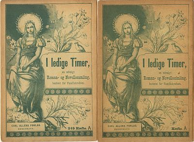 Først to reklamer fra seriens start. Den første er fra "Tillæg til Illustreret Familie Journal" fra 5. januar 1896, hvor serien første gang annonceres. Det andet er fra 19. Juli 1896, hvor indbindingen annonceres. Det første bind er altså det grønne. ![]()