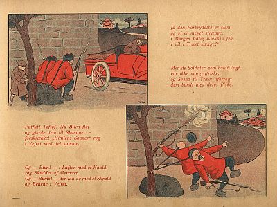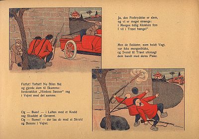 | 1. Jorden rundt i 40 Dage. Trykt og udgivet af A/S Carl Stender. Af Carl Røgind (tegninger) og Axel Breidahl (tekst). 14 sider. 1. udgave 1914. 2. udgave 1918. Tegneserieagtig billedbog. Ved 2. udgaven er farverne noget ændrede og specielt er en del af teksten, der var trykt med sort i 1914-udgaven, nu trykt med rød farve. Det kan være lidt svært at se forskel på forsiderne, men der er farveforskelle. Se stor gengivelse ved klik på forsiderne. |