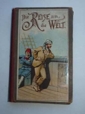 | Illustrationerne. Der findes 5 chromolitografier som illustrationer til bogen, men ingen af udgaverne har mere end 4 af de 5. Desværre kender jeg ikke den tyske udgave, som måske har alle 5 illustrationer. Men man kunne tænke sig, at man - for at spare på de formodentlig dyre illustrationer - kun har villet forsyne hver bog med 4 illustrationer i den danske udgave. Man har dog haft alle 5 illustrationer til rådighed, for i de forskellige eksemplarer af bogen findes alle illustrationer, men i forskelligt udvalg. Illustrationerne viser karakteristiske episoder fra romanen, men er langt fra altid placeret i relation til den relevante tekst! Der synes dog at være et mønster i hvilke sider, illustrationerne er klæbet på. De 5 illustrationer viser: 1) Phileas Fogg og Passepartout på dækket af skib – muligvis