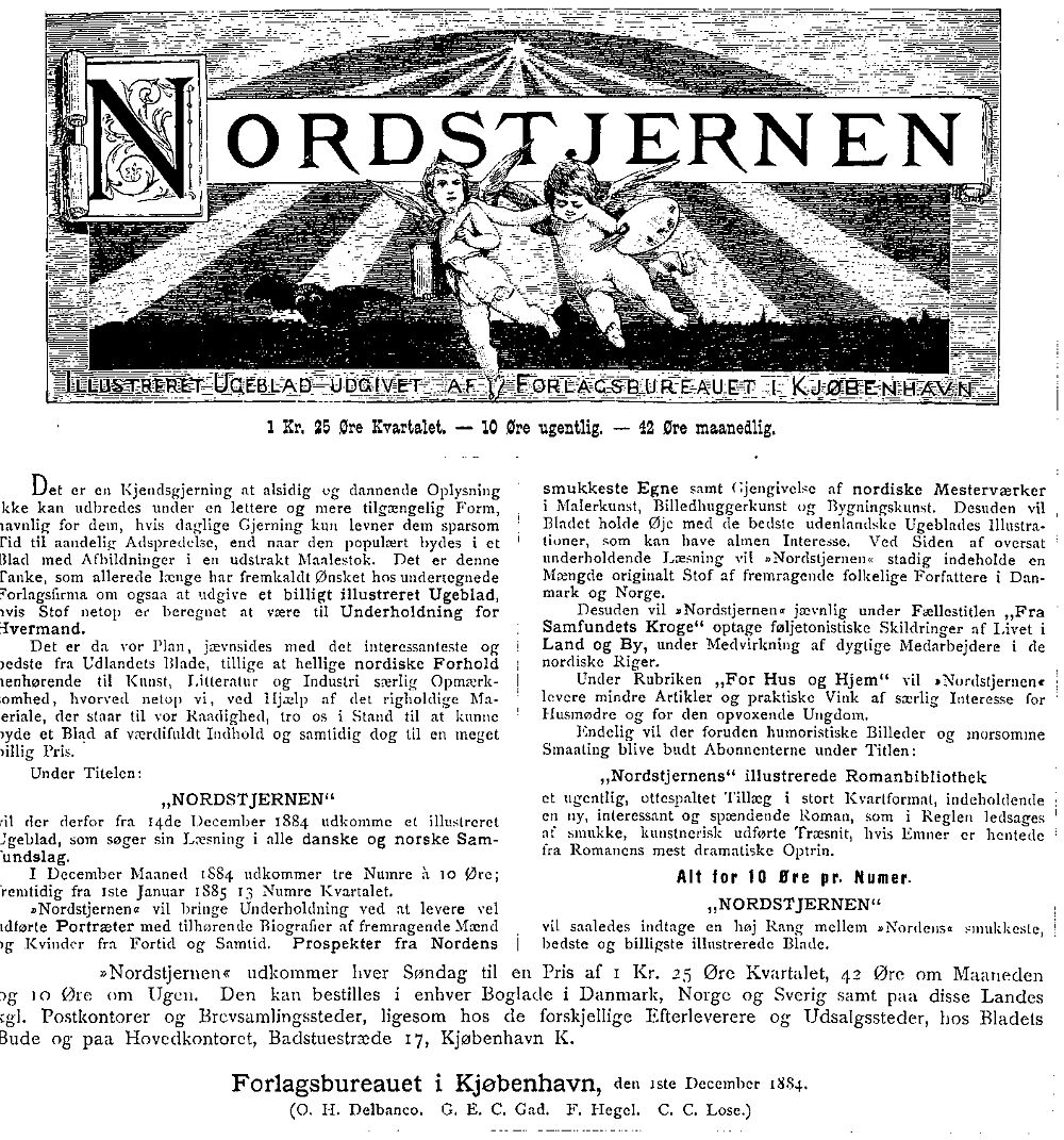 ![]() ![]() Reklame for Nordstjernen i Illustreret Tidende, december 1884: ![]() |