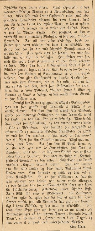 Tidsskriftet "Nutiden" fra 1879, søndag d. 6. april.Her blev bragt et stort portræt af Jules Verne - og på næste side var der en omtale af forfatteren.