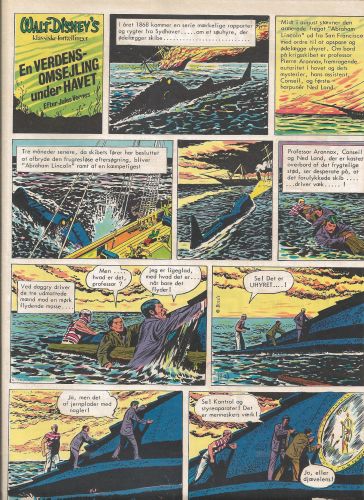 tilsvarende tegneserieoversigter fra de andre nordiske lande. Af danske bidrag skal bemærkes udgaven af Zarens Kurer fra børnebladet "Børnenes Blad " (Chr. Erichsen) af Oscar Knudsen og Niels Meyn, og den ufuldendte version af Jorden rundt i 80 dage af Helge Hansen i ugebladet Landet. Bemærk også tegneserierne i radiobladet Halo- Halo. |