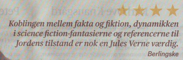 Ib Michael: Jyllandsposten anmelder 18. sep 2015 Ib Michaels bog "En anden sol", der favner naturvidenskaben. Der foretages en jordomrejse under havets overflade, da personerne regner med, at en supernova vil smadre jorden. Anmelderen, Erik Svendsen, kommenterer dette med "Jules verne, go home". ![]() En anden sol. ![]() Dagens Politik indeholder en anmeldelse af Ib Michaels nye bog. Her skriver Bjørn Bredal bl.a. . Her kommer en kærlighedshistorie under havet plus en mordgåde samt især: en fire hundrede sider lang kærlighedserklæring til Jules Verne og "En verdensomsejling under havet". Romanens fire hovedafsnit er prydet med de originale illustrationer fra førsteudgaven, mens romanens sidste side er en række ikoner, som kan skannes, så man når frem til hjerneudvidende sider på nettet ... ![]() I Niels Lyngsøs nye bog Min ukendte bror (Gyldendal 2015) støvsuger den videbegærlige Hans-Peter Skovlunde bibliotek: Hans-Peter