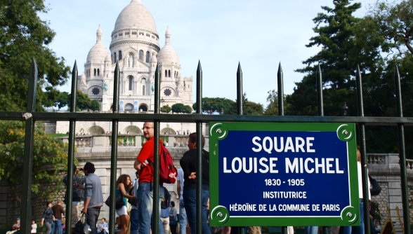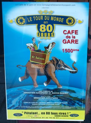 i den lille afgangshal i Nice med det velkendte navn. ![]() ![]() Pladsen for foden af trappen og kabelbanen til Sacre Coeur-kirken på toppen af Montmartre. Pladsen er opkaldt efter anarkisten Louise Michel, omtalt mere indgående i Verne-selskabets nyhedsbrev nr. 5 ![]() Et indtryk fra Marché aux livres ved Porte de Vanves: De fine gamle Hetzel-udgaver beundres. ![]() Teaterstykket Le tour de Monde en 80 jours spilles stadig! nu på 6. sæson. Det må siges at være en succés. Forestillingen er også udkommet på DVD. Le Café de la gare. Flere steder i Bandol i Sydfrankrig viser skilte hen til Theatre Jules Verne. Det viser sig at være indrettet i byens gamle skole, der sammen med biblioteket udgør et kulturcenter. Den Paul Ricard, der omtales, er den mand, der havde tjent sig en milliardformue på fabrikation af den berømte Pastis Ricard. Han ejede en ø ud for Bandol og har åbenbart financieret mange ting i byen, herunder Theatre Jules Verne. ![]() ![]() ![]() Fra Lejf: Netop hjemkommet fra en uge på Kosika fandt jeg dette citat fra "Matthias Sandorf: "På Korsika er der ikke lang vej fra modvilje til had, og fra had til vold er der endnu kortere."Der er heldigvis ganske fredeligt nu om dage. Jeg fik også et billede af et krydstogtsskib i havnen i Calvi. Rederiet kender vist ikke sin Jules Verne. ![]() Katedralen i Amiens – Katedralen