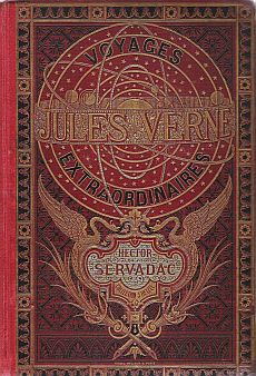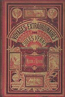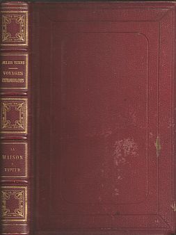 tryk i sort og guld af typen "A la Banniere". Le Pays de Fourrures. Hetzel, ukendt årstal, Ret slidt bind, der dog hænger sammen efter en nødtørftig reparation. . ![]() Aux deux Elephants. VE 6 "Vingt-Mille Lieues sous les Mers". J. Hetzel et Cie, 18, Rue Jacob, Paris. U.år. . ![]() 111 illustrationer af Neuville & Riou. 434 s. + 2 s. indh. + catalogue EL (der daterer indbindingen til 1888). Indbindingen er rød komponeret helshirting med tryk i sort og guld af typen "Aux deus Élephants" Lenègre type 3. (Beskrevet i Jauzac s. 181) ![]() VE 11 "Le Tour du Monde en 80 Jours" og "Le DSocteur Ox" med "Maitre