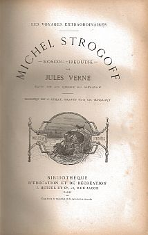 og bagpermer designet af Wendling. ![]() VE 14 "Michel Strogoff" og "Un Drame au Mexique". J. Hetzel et Cie, 18, Rue Jacob, Paris. (1902). 99 illustrationer af Benett. 8 farveillustrationer. 368