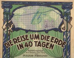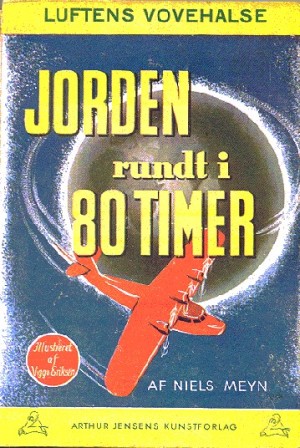 andre lån af titlen på Vernes bestseller. For nogle af eksemplerne kan man finde uddybende stof på siderne om rejser, film, mm. A. Jorden rundt på XX år/dage/timer/minutter/sekunder. 125 år: 80 år: ![]() Wulffmorgenthalers stribe fra Politiken (Med venlig tilladelse af Martin Nielsen [martin@wulffmorgenthaler.com] ![]() 70 år 2år: ![]() ![]() 80 dage: ![]() ![]() se rejser ![]() se rejser 72 dage: se rejser ![]() 44 dage: ![]() se rejser 40 dage: ![]() se tegneserier Et tysk nodeblad fra forestillingen "Die Reise um die Erde in 40 Tagen", som åbenbart er opført i Berlin på Metropol Teatret. Noderne er fra Thalia-Theater-Verlag, som samarbejdede med Wilhelm Hansen. Måske er det derfor de er havnet i Danmark. Omslagsillustrationen er rigtig Jugend, så formodentlig fra omkring 1900 +/-. Hvis man følger rejsen på kortet øverst, så ser det ud til at der er benyttet den transsibiriske jernbane. Teksten afslører ikke hvor meget der er Jules Verne-inspiration - måske ganske lidt som i vores hjemlige revytekster. ![]() ![]() 21 dage: ![]() 18 dage: ![]() se film 8. dage. Artikel i Stockholms-Tidningen från den 3 januari 1932 om Posts och Gattys flygfärd jorden runt på 8 dagar med "Winnie Mae" - en resa underbarare än vad Jules Verne kunde ha hittat på - ska man tro på det? ![]() ![]() ![]() 7 dage: ![]() Fra Wikipedia: Herbert Strang was the pseudonym of two English authors, George Herbert Ely (1866–1958) and Charles James L'Estrange (1867–1947). They specialized in writing adventure stories for boys. Both men were staff members of Oxford University Press, which published their books, giving them a patina of social status and approval for the parents of their intended audience. Their work showed a broad general debt to that of Jules Verne; Round the World in Seven Days was one of their most popular books. Ely and L'Estrange have been classified as "popular writers of imperial fiction" and "successors of G. A. Henty...." The pseudonym was also employed for several series of anthologies, works "edited by Herbert Strang" that included The Big Book of School Stories for Boys and The Oxford Annual for Scouts. There was even a series for girls by "Mrs. Herbert Strang". 3 dage og 8 timer: ![]() Jorden rundt i 80 timer af Niels Meyn er fra Arthur Jensens kunstforlag 1944 (omslag og ill. af Viggo Eriksen). 1 dag: ![]() 1 timer og 20 minutter: ![]() ![]()