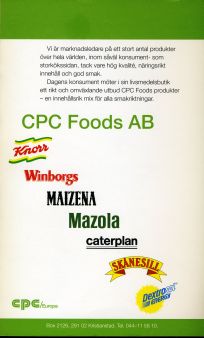 . ![]() . Jag stötte på en udda version av Niloés "Jorden runt på 80 dagar" från 1988. Inlagan är Niloés 1988-version, med ISBN-nr 91-7102-021-7, 316 sidor plus en karta, översättning J. Gunnarsson. Men boken är häftad och har nytt omslag. Omslagets insidor har reklam för CPC Foods AB, med varumärken som Knorr, Maizena m fl. Boken har säkert används som reklam för företaget. .