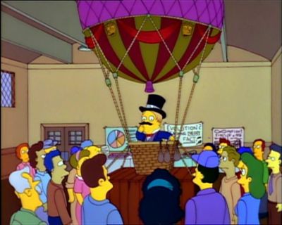 gondolen sidder Fileas Fog. Ballonscenen varer kun ganske få sekunder. ![]() Endnu et eksempel fra The Simpsons, udsendt som DVD med danske undertekster.