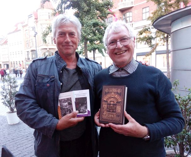 spansktalende 'Sociedad Jules Verne' inviterer til samling i Vigo i Galicia i romanen En verdensomseiliing under havet. I romanen viet Jules Verne et helt kapittel til ‘Vigo-bukta’ [Del 2, kap.VIII] der han i tekst og bilder beskriver hvorden manskapet på undervannsbåten henter opp en stor skatt i sølv og gull fra sunkne gallioner etter et stort sjøslag i 1702. En av initiativtagerne til samlingen er Eduardo Rollo i SHJV (shjv.org) - som selv bor i Vigo og også har skrevet bok om emnet [http://shjv.org/publicaciones/libros-ediciones-paganel/14-verne-bahia-tesoro]. Se Twitter -meldingen til SHJV om arrangementet /https://twitter.com/VerneHispanico/status/884804696308895744 https://twitter.com/VerneHispanico/statu, der s/884804696308895Her er nyhetsoppslag fra avisen i Galicia: 'La voz de Galicia' http://www.lavozdegalicia.es/noticia/vigo/vigo/2017/07/11/universo-verne-fija-ojos-vigo-dos-aniversarios-2018/0003_201707V11C1995.htm [Eduard Rollo no 2 fra høyre] Beste hilsen Per Johan ... no 2 fra venstre ;-) ![]() 5. september 2017: Bogbytte. |