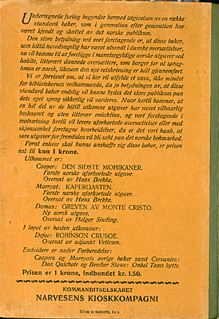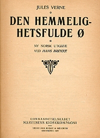 | Fire meget tidlige norske Jules Verneudgivelser, at fire forskellige udgivere, som vi ellers ikke ved meget om (endnu). Alle oplysninger vil være interessante og modtages meget gerne. På grund af sprogsammenfaldet med dansk udgives der ikke så meget tidlig Verne i Norge. De danske udgaver sælges også i Norge af forskellige "hovedkommisærer" bl.a. Cammermeyer. Derfor er disse fire udgaver særdeles interessante og sjældne. |