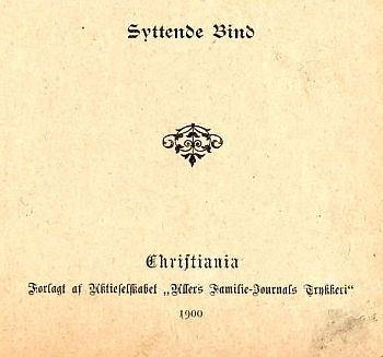 Forlagt af Aktieselskabet ”Allers Familie-Journals Trykkeri”, Christiania.
