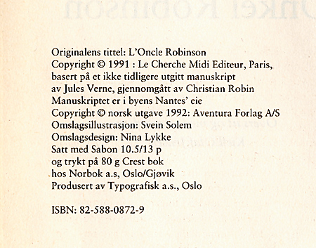 1999 ble Aventura oppløst og gikk inn i Cappelen. Aventura udsendte i 1992 en meget interessant Verneroman, Onkel Robinson, der egentlig fra Vernes hånd kun var et romanudkast, hvor første del af 3 blev skrevet 1870 - 1871, men først udgivet 1991. |