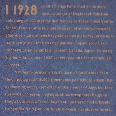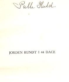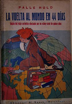 kronik om emnet. ![]() ![]() ![]() Det kgl. Biblioteks database REX har en del fremmedsprogede udgaver af Palle Hulds bog. Man kan faktisk blive lidt imponeret over datidens interesse for Palle og derigennem også for Jules Verne. Han beskrev sin rejse rundt om Jorden i 1) "Jorden rundt i 44 Dage af Palle" , Hasselbalch , 1928, 178 sider med mange fotos, (forside: Axel Mathiesen).