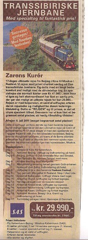 Fra "Politiken" tirsdag d. 26. april 2011: .Så blev Jules Verne atter misbrugt i en rejsereklame. Det er "Da Gama Travel", som arrangerer en rejse fra Beijing til Moskva ad den transsibiriske jernbane og kalder den "Zarens Kurér". I betragtning af, at Michel Strogoff rejste fra Moskva til Irkutsk så er det da noget af en tilsnigelse. Hvis reklamefirmaet havde kendt mere til Jules Verne, så skulle det jo have været en omvendt "Claudius Bombarnac" og ikke en "Zarens Kurér".