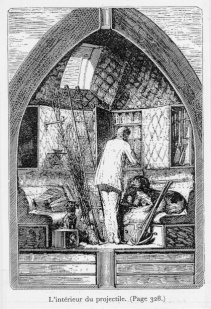 Det må bemær-kes, at Jules Verne lader dem benytte raketter,