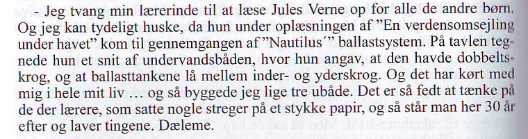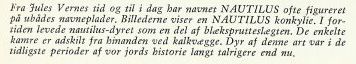 Selv om scan af vedhæftede fundne bog ikke er stemplet Jules Verne, så er det vel noget der tangerer hans univers: ![]() Meget interessant og morsom bog om tilværelsen set gennem vilde ideer og opfindelser. H. Scharfenberg: Under Nordpolens is. Med atom-ubådene "Nautilus" og "Skate". H. Hirschsprungs forlag, København 1959, hæftet, med smudsomslag 159 sider, Mange sorthvide illustrationer, heriblandt den viste Nautil-skal, der er ophav til navnet, som også omtalt i Nyhedsbrev nr. 5. ![]() ![]() Blot denne lille kommentar til "Under Nordpolens