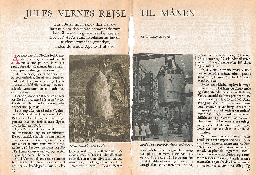 Også i forbindelse med astronauter finder vi et nytårsskrift udgivet 1970 af trykkeriet F. E. Bording som gave til forretningsforbindelser og venner. Indholdet er en gennemgang af året 1969's begivenheder i billeder og tekst. Referencen til Verne er naturligvis Armstrong og hans teams månelanding. ![]()