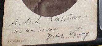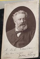 forfattere - og blandt dem et "kabinetsfoto" af Jules Verne med en hilsen