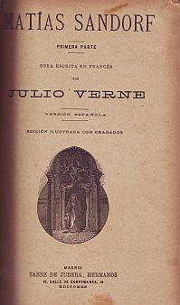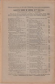 en tømmerflåde oven på et vulkanudbrud.![]() Det tykke bind gør det vanskeligt at vise de midterste hefter, men indholdet er: La estrella del sur 1 +2 , 63 + 63 sider Matias sandorf 1 + 2 + 3 + 4 + 5 , 64 + 64 + 64 + 64 + ? (de sidste sider mangler) Robur el conquistador 1 + 2, 63 + 64 sider Un billete de loteria med Frritt-Flacc 1 + 2, 63 + 51 sider Norte contra sur 1 + 2 + 3 + 4, 63 + 64 + 63 + 63 sider ialt 15 hefter udgivet i Madrid af Saenz de Jubera, Hermanos, 16. Calle de Campomanes , 10. Hefterne er rigt forsynes med de originale franske tegninger og romanerne er trykt i spalteformat. I Matias Sandorf er medtaget Vernes tilegnelse af værker til Dumas den ældre og svaret fra Dumas Fils. ![]() ![]() ![]() ![]() . ![]() . Viaje al centro de la tierre + Un drama en México + Diez horas de caza udgivet