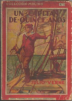 Barcelona (1920). Illustreret, 143 s. Heftet med farveillustration på forside. ![]() "Un Capitan de Quince Anos", Colleccion Molino No 1, Editorial Molino, Barcelona - Buenos Aires, 1934. Illustreret, 128 s. Dobbeltspaltet tryk. Heftet med farveillustreret forside. "Dos Anos de Vaccaciones", Colleccion Molino No 6, Editorial Molino, Barcelona - Buenos Aires, 1934. Illustreret, 132 s. Dobbeltspaltet tryk. Heftet med farveillustration på forside. Der er reklame for 23 Jules Verne titler i serien. Forsideillustrationerne er væsentlig bedre end de sort-hvide inde i bøgerne. Men de er ikke plagiater af de franske. "La Isla Misteriosa - Tomo II".