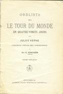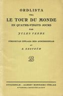 Anmärkning. Bandet till den femte upplagan finns i två varianter. Den ena är identisk med bandet till de tidigare upplagorna från Billes, bortsett från att förlagsnamnet är utbytt. Det andra – senare? – saknar Bille-versionens svarta dekorlinjer och har Bonniers förlagsemblem. 1927. Nyt oplag. Bonniers. Ordlista till Le Tour du Monde en Quatre-Vingts Jours par Jules Verne. Förkortad upplaga med anmärkningar af D:r E. Edström, lektor. Wilhelm Billes Bokförlags Aktiebolag. Nya Tryckeri-Aktiebolaget, Stockholm, 1891. 72 sidor. Häftad (ej sett omslag). Samma. Andra upplagan. Okänt tryckår. Samma. Tredje upplagan. 1907.
