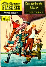 | A. Illustrerade Klassiker 1956 - 1976. Forlag : Illustrerade Klassikers Förlag 1956 - 1970, Williams 1970 - 1976, i alt 228 numre. Il. Kl. udgives på forlagene: Klassiker nr: 1–177: Illustrerade Klassiker FörlagKlassiker nr: 178–228: Williams Förlags AB (også senere oplag af de første 177) Stjärnklassiker 1-65: Williams Förlags AB. Efter hver udgave er nævnt sidste nummer af listen på bagsiden (evt. en reklame) og prisen. 2: Resan til månen. Tegner A. A. Blum. ![]() 2,2: 1958 (68, 1,00) 2,3: 1966 (165, 1,25 , Pellefant) 2,4: 1968 (165, 1,25) 2,5: 1969 (199, 1,50) 2,6: 1972 Stj. Kl. 40. 20. En världsomsegling under havet. Tegner H. C. Kiefer. ![]() 20,1: 1957 (32, 1,00) 20,2: 1960 (103, 1,00) 20,3: 1963 (163, 1,25) 20,4: 1967 (165, 1,25) 20,5: 1968 (165, 1,50, Fantastiska fyran, Rymden runt) 20,6: 1970 (Stj. kl. 2) 21. Den hemlighetsfulla ön . Tegnere: R. H. Webb og D. Heames. ![]() 21,1: 1957 (32, 1,00) 21,2: 1964 (165, 1,25) 21,3. 1966 (165, 1,25, Vasa, Dubbelklassiker Mot stjärnorna) 21,4: 1967 (165, 1,25) 21,5: 1968 (165, 1,50) 21,6: 1971 (Stj. Kl. 19). 44. Resan till jordens medelpunkt . Tegner: N. Nodel. ![]() 44,1: 1957 (46, 1,00) 44,2: 1963 (158, 1,25) 44,3: 1963 (163, 1,25) 44,4: 1969 (199, 1,50) 48. Jorden runt på 80 dagar. Tegner H. C. Kiefer. ![]() 48,1: 1958 (50, 1,00) 48,2: 1959 (84, 1,00) 48,3: 1962 (151, 1,25) 48,4: 1963 (158, 1,25) 48,5: 1968 (165, 1,50) 48,6: 1970 (Stj. Kl. 9) 87. Kometresan tegner: G. McCann. ![]() 87,1: 1959 (87, 1,00) 87,2: 1967 (165, 1,25) 87,3: 1970 (Stj. Kl. 14). 105. Tsarens kurir. Tegner: A. L. Hicks. ![]() 105,1: 1960 (1,00) 105,2: 1967 (165, 1,25) 105,3: 1974 (Stj. Kl. 62) 129. Robur Erövraren Tegner: D. Perlin. ![]() 136. Robur, världshärskaren, tegner: G. Morrow. ![]() 136,1: 1961 (136 , 1,25). 146. Tigrar och förrädare, Tegner: N. Nodel. 217. Staden i trädkronorna. tegner: ?
