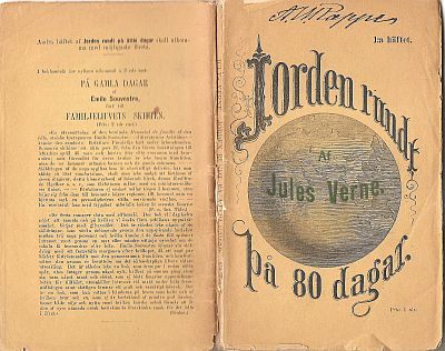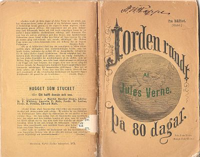 1: 1872-73 (274 s. (120 + 154). 2: ?. 3: 1873 (264 s) Bind fra Lars-Eriks samling. Næsten samme bind kendes fra Hugo Pettersson og Lamm, men her altså Flodin:. så hvad er egentlig et "originalband" ? .Annonce i Dagens Nyheter : Den 23 december 1872 annonserade Sigfrid Flodins förlag att första häftet av ”Jorden Rundt på 80 dagar” hade kommit ut. Priset var 1 Rdr. Andra häftet kom som bekant ut först efter årskiftet. Boken säljs i brodern J J Flodins bokhandel.
