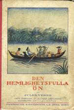 Den hemlighetsfulla ön 1907. Urklippsföljetong i Folkskolans Barntidning. 344 sidor. Illustrerad av Brita Ellström. Litet format. Inbindningspärm, troligen i rött helklot med blindpressningar?