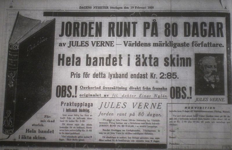 på 80 dagar” i lyxband för endast 2:85, detta med anledning av Jules Vernes
