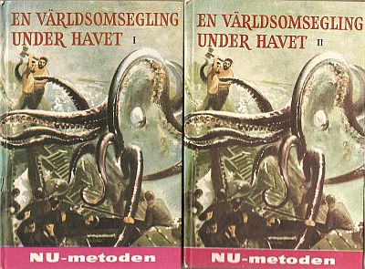 världsomsegling under havet. I-II. Bokförlaget Niloé AB. NU-serien nr 14-15. Svensk text med inströdda engelska fraser. Språkpedagogisk redaktör Karl-Gustav Ek. Engelsk granskare Paul Britten Austin. Svensk bearbetning Gustav Jansson.