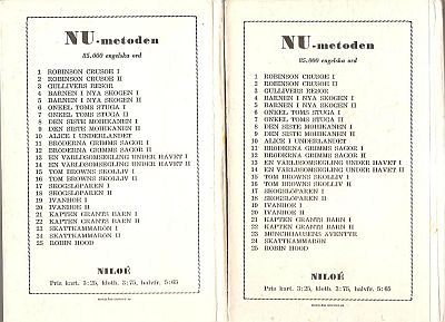 2. Bohusläns Grafiska AB, Uddevalla 1957. 140+140 sidor. Benvita klotryggar med påklistrad pärmbild, samma på del 1 och 2. Förteckning över seriens första 50 böcker på bakre omslaget.Litteratururtval och svensk redigering Erik Lindström. Språkpedagogisk huvudredaktör Hugo Gerring. Engelsk granskare Barbara Barber. Omslagsillustratör Gerd Miller.
