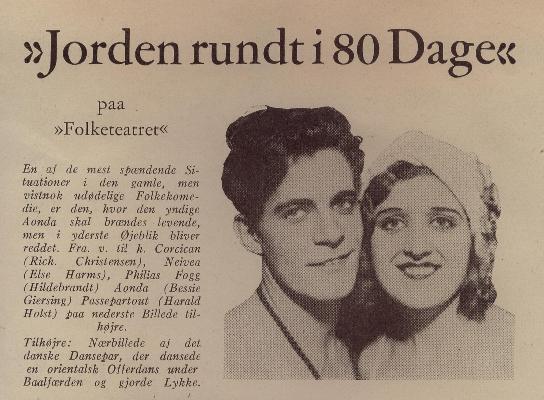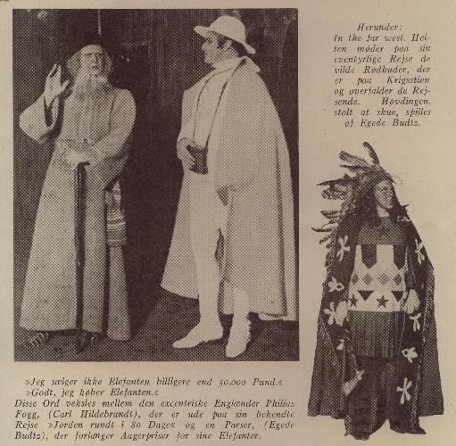 sjette gang!! Om denne opførelse skriver Robert Neiiendam i "Folketeatrets Historie 1845-1945": Hvad der klæder én Scene, kan godt misklæde en anden, selvom Fremstillingen ikke er ringere. Det var "Jorden rundt i 80 Dage" et Bevis paa. Rimeligvis var det Stykkets store Sukces på Casino i 1923 med Martinius Nielsen som Gæst, der forledte Direktør Gregaard til at forsøge, om Heldet ville gentage sig paa Folketeatret. Men det vilde det ikke. Man syntes, at Stykket hørte hjemme i Amaliegade - Barnemindet rækker langt. Slønt Hillebrandt og Harald Holst (f. 1886) sled bravt som Fileas Fogg og Passepartout, førte Anstrengelserne kun til 45 Opførelser regnet fra 2. Juledag 1930. Men på Casino havde Jules Vernes Rejseeventyr udfyldt 465 Aftener, siden Fileas Fogg første Gang "købte Elefanten" i 1876. Billeder og omtale af forestillingen: