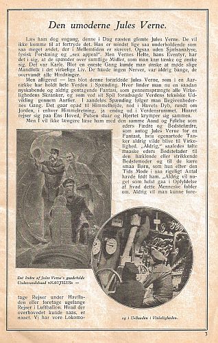 Programmet indeholder dels oplysninger om forestillingen. dels flere artikler og billeder. Artiklen af tyskeren Willy Herm "Den umoderne Jules Verne" antyder, at JV´s