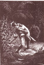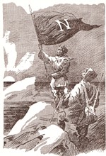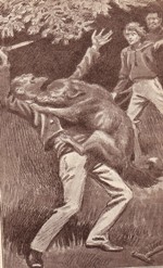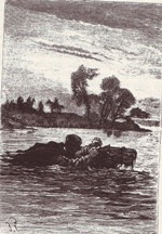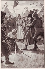 ![]() Fra Kim: I anden anledning har jeg søgt oplysninger om tegneren med signaturen "Th. J." - Th. Iversen, som lavede Verne-forsider for Jespersens forlag i starten af 1900 (han har lavet forsiden til August Birch: Zinkkisten, som jeg netop har genudgivet, og flere andre), og fandt denne side: Supplerende kan jeg fra Københavns Politis registerblade oplyse, at hans fulde navn var Thomas Christian Iversen, og at han var født i Svendborg 14. august 1878. Hans præcise dødsdato har jeg ikke, han forlader tilsyneladende København i 1912 og dukker ikke op igen - i hvert fald ikke i den periode, Registerbladene dækker (ca. til 1923). Han er registreret med titel litograf i 1898, derefter som tegner (1906, 1908). Det gik tilsyneladende lidt stærkt for ham i det første ti-år af 1900 - under overskriften "sladder" kan jeg nævne, at han i 1906 er gift med en Christine fra Haderslev, i 1907 vedkender sig faderskab til et barn med en Marie Petrine i Karlstrup syd for Roskilde, og i 1908 er gift med en Mary Ingrid i København ... Har tegnet illustrationer til de sidste 3 bind i Jespersens 12 binds udgave. Som for de øvrige bind er nogle af tegningerne nærmest kopier af de franske originaler, men Iversen frigør sig dog mere fra de franske end f.eks. Nørretranders. Kejserens Kurér 1907, omslag i farver og 5 s/h illustrationer. Omslaget genbruges i 1922, men ikke i 1936. Rejsen til Maanen 1909, omslag i farver og 5 s/h illustrationer. Omslaget genbruges i 1922 og 1933. Keraban Stivnakke 1910, omslag i farver og 5 s/h illustrationer. Omslaget genbruges i 1922. Eksempel, hvor Strogoff forhindrer piskningen af sin gamle mor i Kejserens