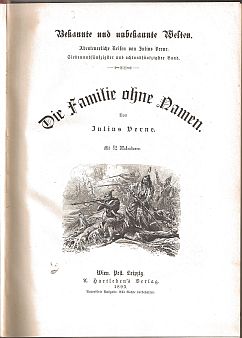 "Die Familie ohne Namen" del 1-2. A. Hartleben´s Verlag Wien. Pest. Leipzig. 1893. Serien "Bekannte und Unbekannte Welten" bind 57-58. 402 s. Brun helshirting med forfatter of titel i guldtryk og dekoration i blindtryk . ![]() . Denne type bind skulle skyldes Hartlebens foretrukne bogtrykker Friedrich Jasper. Benævnt