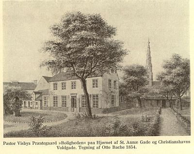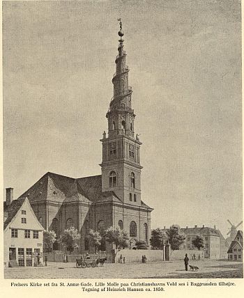 Frelsers kirketårn i baggrunden. Denne er tegnet 7 år før Jules Verne´s besøg.