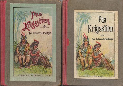 4. Löwensohn ”Erzählungen aus fernen Weltteilen”. ”Nach J.H.Campe, Cooper etc. für die Jugend bearbeitet von W. Christian. Mit sechs Illustrationen in Farbendruck.” U. år. 120 s. Illustration på forperm + 5 indklæbede illustrationer. Bogblokkens format: 19,0x13,7 cm. På sidste side nederst: ”Druck und Verlag von G. Löwensohn, Fürth (Baiern).” Bind: Karton med rød shirtingsryg. N. Hansen & Co. ”Fortællinger fra fjerne Verdensdele”. ”Efter J.H.Campe, Cooper etc. Bearbejdet for Ungdommen af W. Christian. Med seks illustrationer i Farvetryk. Kjøbenhavn. N. Hansen & Co.s Forlag.” U. år. 120 s. Illustration på forperm + 5 indklæbede illustrationer. Bogblokkens format: 20,1x14,0 cm. Bind: Karton med rød shirtingsryg. Alle illustrationer i dansk og tysk udgave er identiske.