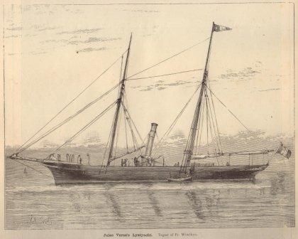 As mentioned initially Jules Verne was enthusiastic about sailing. During the course of time he owned three ships, all by the name of “Saint Michel”. The first two were smaller sailing boats; the third was a larger ship with a steam engine, built in 1876 and bought by Verne in 1877 at a cost of 55,000 francs. After several other trips aboard the “Saint Michel III” it was the plan that a journey to the Baltic Sea region, with stops in Copenhagen, St. Petersburg, Stockholm and Kristiania, should be made. This 2nd journey is far better documented than the first. By 1881, Jules Verne was internationally well known, the contemporary press wrote about the famous writers visit, and Verne’s brother wrote a travelling journal “De Rotterdam a Copenhague”.