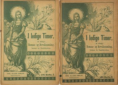 Først to reklamer fra seriens start. Den første er fra "Tillæg til Illustreret Familie Journal" fra 5. januar 1896, hvor serien første gang annonceres. Det andet er fra 19. Juli 1896, hvor indbindingen annonceres. Det første bind er altså det grønne. ![]()