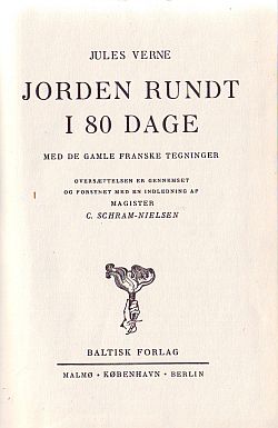 til Månen , der kommer med. Alle 3 bind er trykt hos Dyva & Jeppesen A/S grafisk Etablissement. De måler ca. 130 x 184 mm. Schram-Nielsens udgave af Jorden rundt udkommer helt frem til 1976, hvor Lademann benytter den til serien Det store eventyr. Indbindinger. 1. Brunt fransk halvlæderindbinding ("halvfransk bind"). ![]() Det vides ikke om Jorden rundt findes i denne indbinding. ![]() 3. Halvshirting med blå ryg med guldtryk. Kendes kun for Fra Jorden til Maanen. ![]() Sverige: I Sverige udgiver forlaget Kaptajn Grants barn i 1929 , En världsomsegling under havet i 1969 og 1974 og Från jorden till månen : direkt överfart på