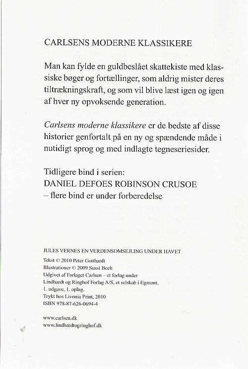 | 3. Carlsen klassiker 1982. Endnu en serie klassikere på grænsen mellem bøger og billedbøger, hvor der udsendes et enkelt bind Verne: