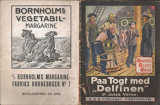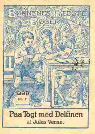| 2. Paa Togt med Delfinen. Børnenes Bedste Bøger nr. 7. Illustrationer af J. P. Bie. 64 sider. Tryk: Aarhus Stifts Rotationsbogtrykkeri (1924). Der er tale om en forkortet udgave af Blokadebryderne, der også findes i Schous Mindre Fortællinger 1, men dette er en anden oversættelse. En tredje oversættelse kendes fra en føljeton i Hammel Avis fra 1890. ![]() Bogen indgår i en serien Børnenes Bedste Bøger nr. 7. ![]() Hele serien kan ses i vores "BBB-Galleri": BBB-galleriet Serien består af 8 hefter med kartonomslag med sort forside med